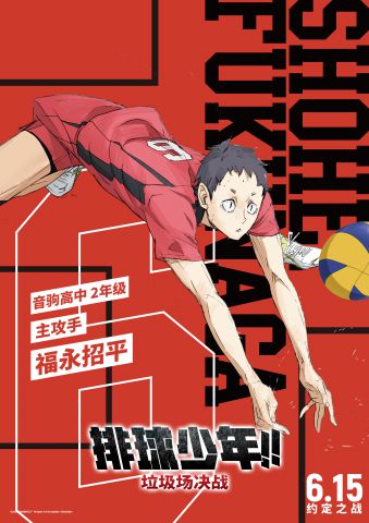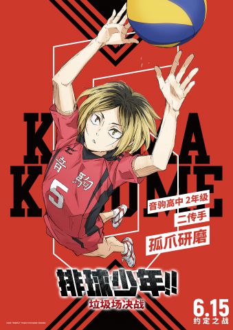 自前日,超人气热血IP动画电影《排球少年!!垃圾场决战》发布第二波角色音驹高中排球部二传手孤爪研磨,以及副攻手黑尾铁朗单人海报后,片方又于今日释出音驹高中其余队员单人