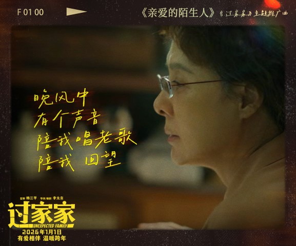“大雨中,有一双手,为我撑着伞。寒风中,有一件衣,披在我身上。”即将于2026年1月1日上映的合家欢电影《过家家》今日发布张韶涵演唱的主题推广曲《亲爱的陌生人》及同名MV,歌曲由曾打造《世界赠予我》的著名音乐制作人曹正杰作曲,袁晶作词。张韶涵以一贯动人而细腻的嗓音,将家人之间无论顺境逆境始终相依相伴、彼此扶持的深厚情感娓娓道来,用歌声温暖诠释:那些看似“陌生”的缘分,或许正是生命赠予我们最珍贵的“家人”。