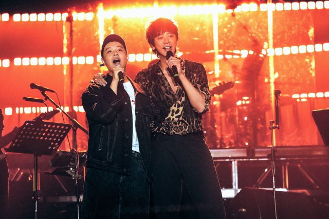 信与马頔的渊源可以追溯至《披荆斩棘的哥哥》第二季,当时他们与郑钧、郝云组成“表面功夫”组合,当其他队练歌练舞直至深夜的时候,几位乐坛老炮儿却随性得多,成为“披哥”前无古人的“反内卷大师队”。不仅如此,信更是在宿舍厨房支起了自己的烧烤摊,并用节目几个月的时间成功喂胖马頔,为二人“相爱相杀”的深厚情谊奠定了坚实基础,而曲风相去甚远的两位音乐人此次在演唱会上再度合作,对于马頔的倾情助阵,信十分感动却依旧不忘调侃老友。“谢谢来自石家庄的马頔!别看他什么都满不在乎的样子,其实他……真的什么都满不在乎的。”两首歌唱毕,信还邀请马頔留下来继续陪他——“你常来好不好,这样我比较轻松,还是你继续陪我唱下一首《死了都要爱》?”马頔笑着连忙婉拒并朝下台口走去,“我只能唱‘死了’。”