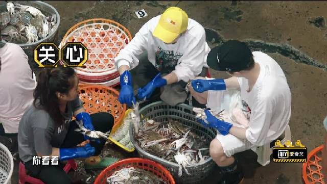 上厕所按次收费,穷到没有换洗衣服,还有导游“虎视眈眈”想挣出点口粮,每天还得交200元的团费……食住行都要与节目组斗智斗勇的嘉宾们,打工是职业体验,更是一场生存战。 为五斗米折腰,带领着观众一起体会职场的艰辛、尴尬和荣光,这样的嘉宾们从一开始就踩在了观众的笑点和好奇心上。 码头“搬冰工”陈赫和黄渤,在流水化作业的冰场里当起了两颗手动版“螺丝钉”,穿着短裤瑟瑟发抖也不能打消每小时100元的欣喜;“绑蟹工”鹿晗会因为业务不熟练被老板娘当面吐槽,手指被螃蟹夹伤也罢,结工钱时撒娇也罢,都没能为自己多争取到5块工钱;邓超搬着两箱梭子蟹兴冲冲来到市场,轻松出手赚到500元,转头就发现卖亏了不少,心里五味陈杂。