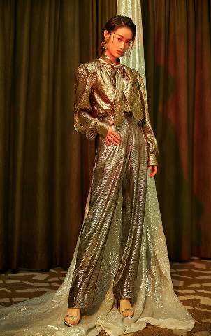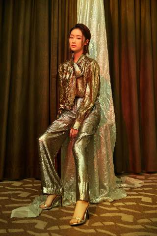 昨日,郭晓婷在上海出席《艳势番之新青年》开播发布会。此次,她一改平日清新甜美的风格,以一身金色蛇纹套装造型现身,酷劲儿十足又冷艳时髦。短发利落,金色夸张爱心耳饰呼