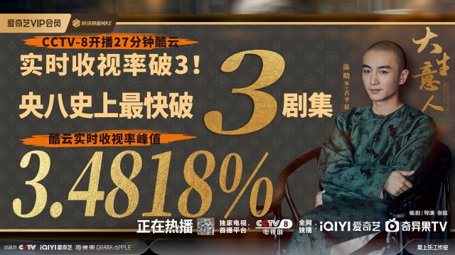 古装人物传奇剧《大生意人》在CCTV8和爱奇艺正式收官,由陈晓领衔主演,讲述晚清书生古平原从流放犯逆袭为一代商王的剧集,凭借其独特的题材与厚重的质感,在播出期间创下了亮眼
