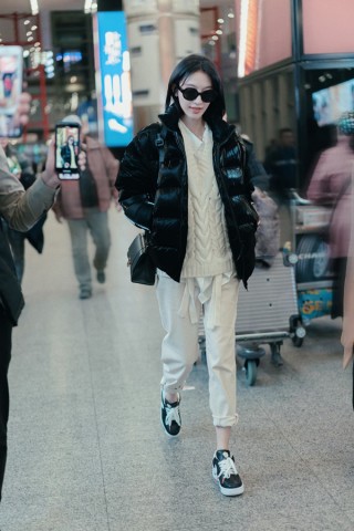 近日,演员张俪曝光了一组机场路透图,她身穿白色麻花毛衣现身,外搭纯黑面包夹克服,一双菊花涂鸦运动鞋跑酷范儿十足。照片中,张俪所有的配饰一应黑白,尤其圆框墨镜衬托下