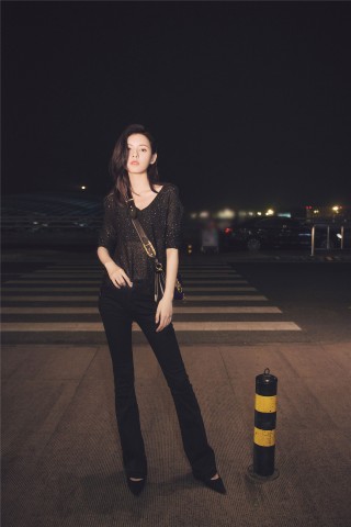 近日,张予曦现身机场,一身时尚造型既时髦又冷艳,她身穿微透薄衫搭配微喇牛仔裤,脚踩尖头猫跟鞋,斜跨狮头元素包包,彰显出灵动的姿态。张予曦一改之前固有的甜美标签,化身性感轻熟女攻气十足,表情姿势都是范儿,经典的黑金元素与朦胧上衣相互衬托,打破了整套装束的乏味与单调,独特的款式复古又性感,她诠释的恰到好处。张予曦微卷长发轻柔飘逸,时而侧头微笑,时而托腮沉思,夜晚灯光映在她精致的五官上极具高级感。