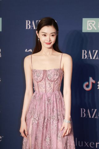 某慈善晚宴昨日在北京盛大举行,明星云集星光璀璨。青年演员宋轶身穿紫罗兰色吊带长裙,钿花装饰铺散于淡紫色薄纱之上,轻纱质感的裙摆下长腿若隐若现,凸显了玲珑曲线,也显
