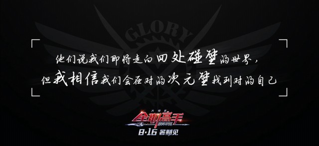 由阅文集团白金作家蝴蝶蓝小说《全职高手》番外改编的电影《全职高手之巅峰荣耀》今日曝光无畏未来版剧情海报,在毕业季之时为莘莘学子们送上一句句暖心的话语,既是为每一位