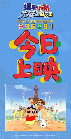 备受影迷期待的电影《蜡笔小新:大人王国的反击》4K修复版,于今日正式登陆全国各大影院!影片讲述了神秘的“怀旧”氛围突然席卷春日部,大人们竟集体消失!面对这前所未有的困境,野原新之助与春日部防卫队的小伙伴们一起踏上了充满欢笑与挑战的“拯救大人”冒险行动的故事。这部在豆瓣斩获9.1超高分的蜡笔小新电影,将以焕然一新的视听品质,带领全年龄层观众重温童年的欢笑与感动。影片已于6月27日开启全国点映,收获无数观众的超高评价!猫眼点映开分高达9.6!目前正在全国热映中。
