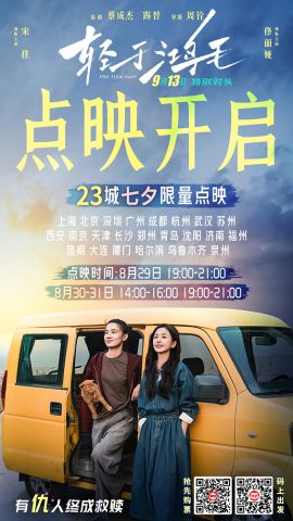 由蔡成杰、踢替编剧,周铨执导,宋佳领衔主演、佟丽娅领衔主演,詹鑫、高舒乔、赵淑珍主演的电影《轻于鸿毛》今日官宣将于8月29-31日开启全国23城七夕限量点映,并同步曝光高能量