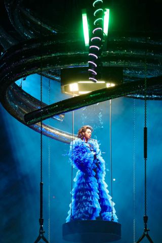 当唱到《永不熄灭的火焰》时,体育场内绽放出震撼的折返烟花。焰火从舞台出发,划过夜空,抵达体育场外沿后再折返回到舞台,与舞台四周升起的冷烟花交相辉映,成为整场演唱会最难忘的视觉记忆点之一。