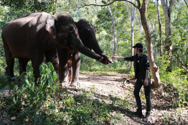 告别了森林消防队的挑战任务,朱正廷又来到了当地中国亚洲象种源繁育及救助中心,与亚洲象展开亲密接触、学习如何保护亚洲象。首度化身“实习象爸”的朱正廷,开启了24小时照顾“七公主”大象一家的忙碌模式。不仅来到象舍为亚洲象亲自投喂胡萝卜、清理粪便,还将它们带到森林中为亚洲象们拍摄了一组大片,过硬的拍照技术还被网友及“追球团”队友称赞很专业。经过考核,朱正廷也凭借认真的表现成为了一名合格“象爸”。