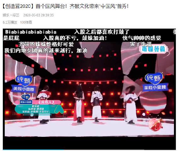 《创造营2020》播出的初评级舞台中,齐鼓学员化身红衣侠女带来的飒爽唱跳舞台《说书人》分外瞩目,风格突出的国风舞台受到教练团和观众的大量好评。 齐鼓学员女侠造型亮相舞台折
