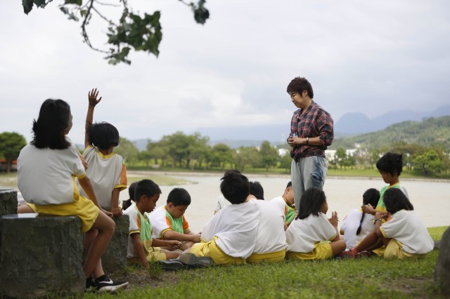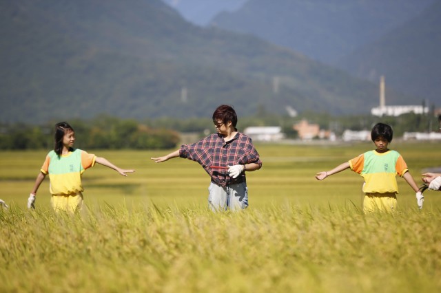 不同于濮老师的戏剧排练,于丹老师来到台湾省池上乡福原小学,为这里的孩子讲解陶渊明的诗作并带他们走进田地劳作。《归园田居》是陶渊明的代表作之一,这首诗作细腻生动地描写了作者对农田劳动生活的体验以及喜悦的归隐心情。考虑到多数学生家庭是“以稻为生”的农户,于丹决定将生活现实与诗歌意义相结合进行讲解,让学生们用自己的双手割稻,在劳动中领会诗歌与自然之美。在当地农户的讲解下,于丹和学生们学会“握镰刀”,前赴后继地投入到劳动大军中。其中,熟悉农活的学生也会主动献上关心,“老师,我可以教你割稻”,平时调皮的学生也不再捣蛋,又快又整齐地割起稻子,一时间所有孩子都沉浸在割稻的喜悦中,正如于丹所说“孩子对稻米那种天然的喜悦与亲近,没有一个孩子说,我怕脏不想干”。割完稻子的孩子们和于丹穿行在犹如金色海洋的稻米地旁,一边唱着“让我们同欢笑,让我们同歌唱,小小世界多美好”,一边拉起伙伴的手前行。