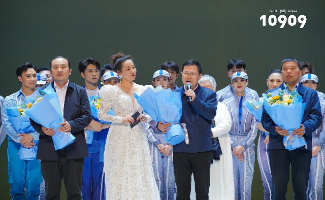 这是舞剧《10909》自去年创排以来在无锡的首场演出。市委常委、统战部部长周常青,市人大常委会副主任袁飞,市政府副市长秦咏薪,市委宣传部常务副部长、市网信办主任蔡文煜,市文广旅游局党委书记、局长蒋蕴洁,江苏省文旅厅艺术处副处长毛小菁和中国船舶七〇二所所长何春荣、纪委书记甘海燕,七〇二所副所长、“奋斗者”号总设计师叶聪,副所长吴文伟,中国船舶集团首席专家胡震等领导嘉宾观看了演出,同时观看演出的还有载人深潜团队的代表。