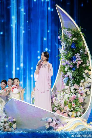 其实回看历史,杨钰莹一直有“收视女王”的名号,她曾六次参加湖南卫视的跨年晚会演出,五次创造收视最高峰,剩下那一次也是第二名,今年秋晚夺魁已经是杨钰莹第六次发力了。说是“发力”,实际上杨钰莹在舞台上的表现比任何人都要清雅从容,她着一袭浅粉色纱裙,好像月光下一片如梦似幻的轻雾,当《轻轻的告诉你》和《茶山情歌》的旋律响起,镜头转至台下,各色观众的反应如出一辙,全都在举着荧光棒轻声合唱,投入的表情仿佛在经历一场久违的遇见,可见无论“顶流”的位置换过多少人,观众最爱的永远是深刻在记忆里的那丝青春悸动。