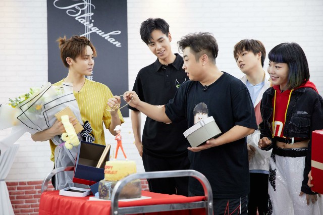8月3日《新舞林大会》录制现场,恰逢小猴子侯明昊的生日。为了给他庆生,小伙伴们也悄悄准备了一番。就在侯明昊练舞的空档,舞房的敲门声突然响起。 只见胡一天推着蛋糕缓缓进